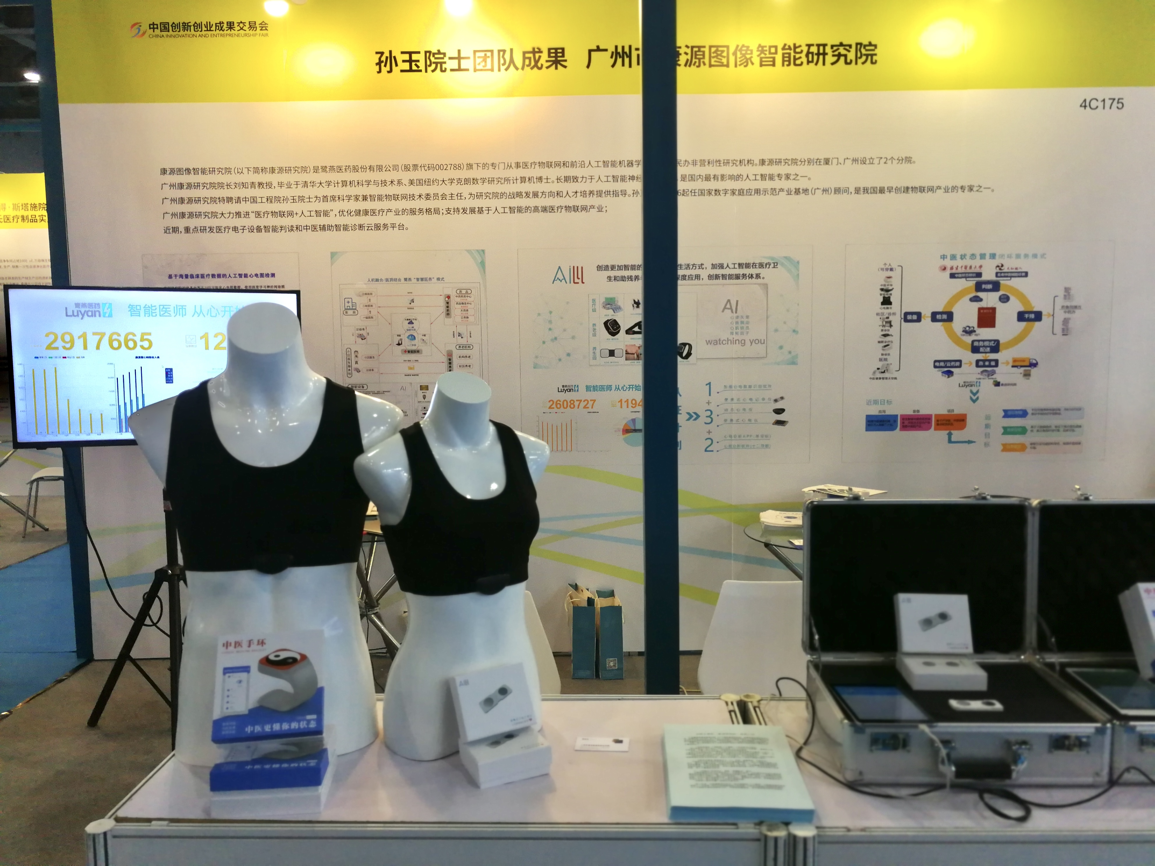 在本屆成果交易會上,康源研究院團(tuán)隊展出了自主研發(fā)的人工智能便攜式心電系列產(chǎn)品,包括便攜式心電記錄儀、動態(tài)心電儀和中醫(yī)手環(huán)等,并現(xiàn)場演示了心電檢測、心電判讀、中醫(yī)狀態(tài)管理閉環(huán)式服務(wù)模式。