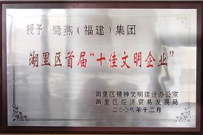 據(jù)悉,在湖里區(qū)文明辦開展的文明企業(yè)創(chuàng)建活動(dòng)中,鷺燕(福建)集團(tuán)有限公司榮膺湖里區(qū)首屆“十佳文明企業(yè)”。